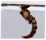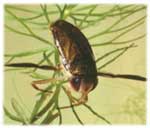 Corixa (Corixa). Almost totally aquatic insect, although adults can fly (if ponds dry out). Vitally important in shallow, rich environments, such as Clumly, Sanday lochs, etc. Usually to be found hanging around weed beds. Fish tend to take them as they swim to the surface, where they pick up a bubble of air, and dive with it. Regional colour variations (I've seen bright green jobs in Isbister loch), but generally buffish brown. Patterns: Silver Invicta & Hare's Ear Muddlers (in small sizes)