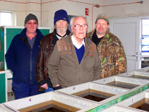 What followed in the months of September and October was a monumental effort from various people to remove the egg rearing trays and tables from Wideford, install them at Kirbister and then secure a water supply to them. The civil, mechanical and electrical engineering was carried out by Colin Sutherland, Ken Kennedy, and Raymond Miller. Diving work at the water intake chamber was expertly taken care of by Brian Foreman and the overall project was managed by Jim Harcus, all OTFA members. The installation of pipework and expert advice on filtration systems etc was handled by Robbie Hewison, the local Scottish Water, Treatment Operator at Kirbister Water Treatment Works. Without his help and enthusiasm, it is doubtful whether the hatchery would have been ready in time. As it turned out, the completion coincided with a spell of heavy rain which allowed the spawning teams to gather the required eggs to fill the hatchery.